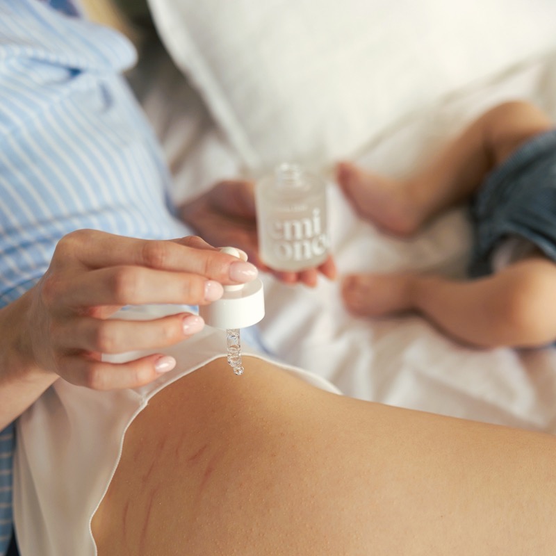 Rozstępy pojawiają się, gdy skóra zostaje rozciągnięta szybciej niż jest w stanie się dostosować. Ich powstawaniu sprzyjają także zmiany hormonalne. Zwykle pojawiają się w III trymestrze ciąży, ale mogą być widoczne już wcześniej – szczególnie na brzuchu, piersiach, biodrach czy udach. Początkowo mają różowo-purpurowy kolor, a z czasem bledną. Im wcześniej rozpoczniemy działania profilaktyczne, tym większa szansa na ograniczenie ich widoczności. Co możesz zrobić po ciąży? Wprowadź regularne i nawilżające masaże skóry, rozważ zabiegi wspomagające odbudowę skóry oraz zadbaj o swój styl życia, w tym dietę i aktywność fizyczną. Pamiętaj, że prawidłowe nawilżenie skóry jest w tym okresie kluczowe, warto zaopatrzyć się w wysokiej jakości kosmetyki nawilżające i ograniczające rozstępy już w trakcie ciąży, takie jak balsamy, maski na brzuch czy serum regenerujące.